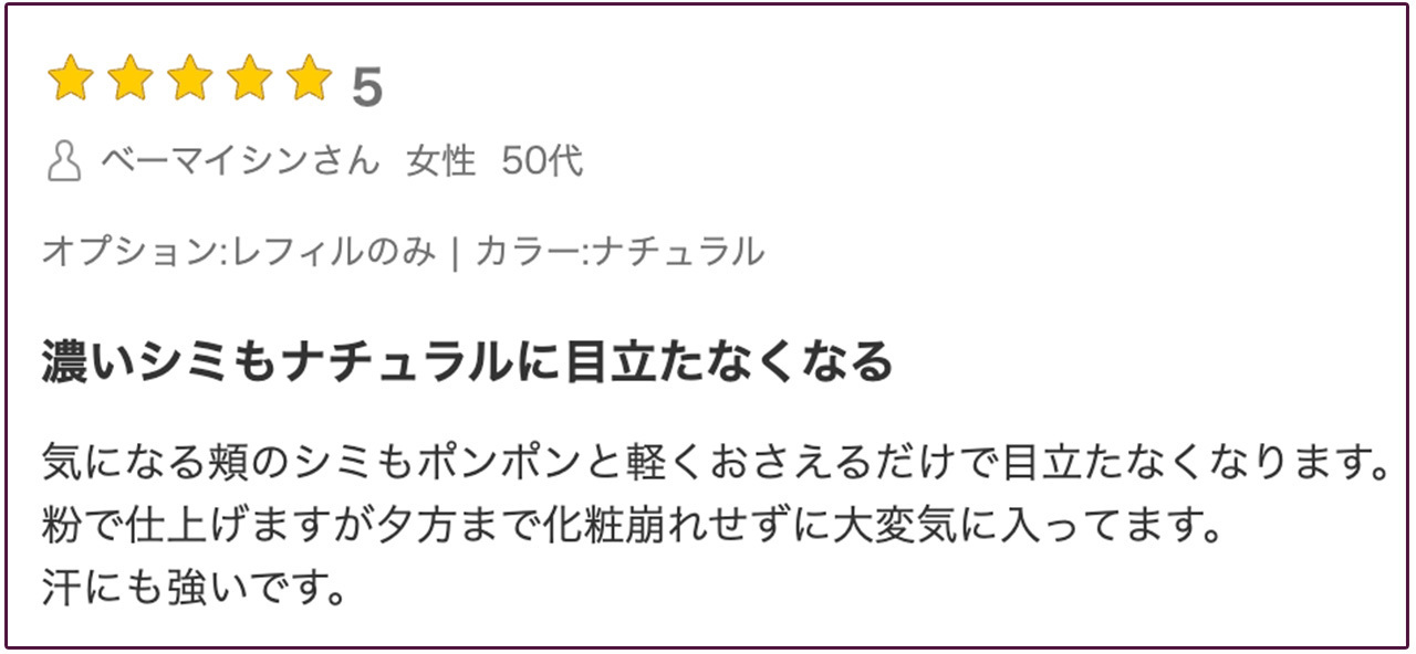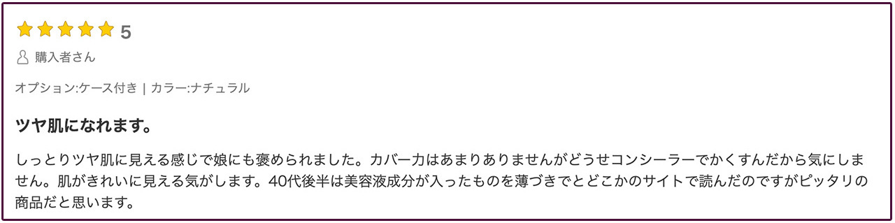 やはりこの年齢になってくると、重ねて厚化粧感が出てしまったり、部分で乾燥したりと毎日試行錯誤…。ですがこちらのファンデは厚塗り感ゼロ、これ1つでいいので時間がない時も楽チンです!