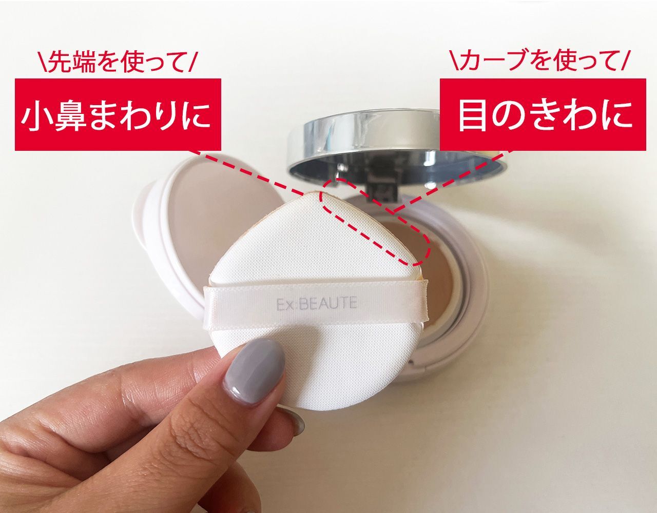 しずく型のスポンジだから、目のきわや小鼻も塗りやすい!